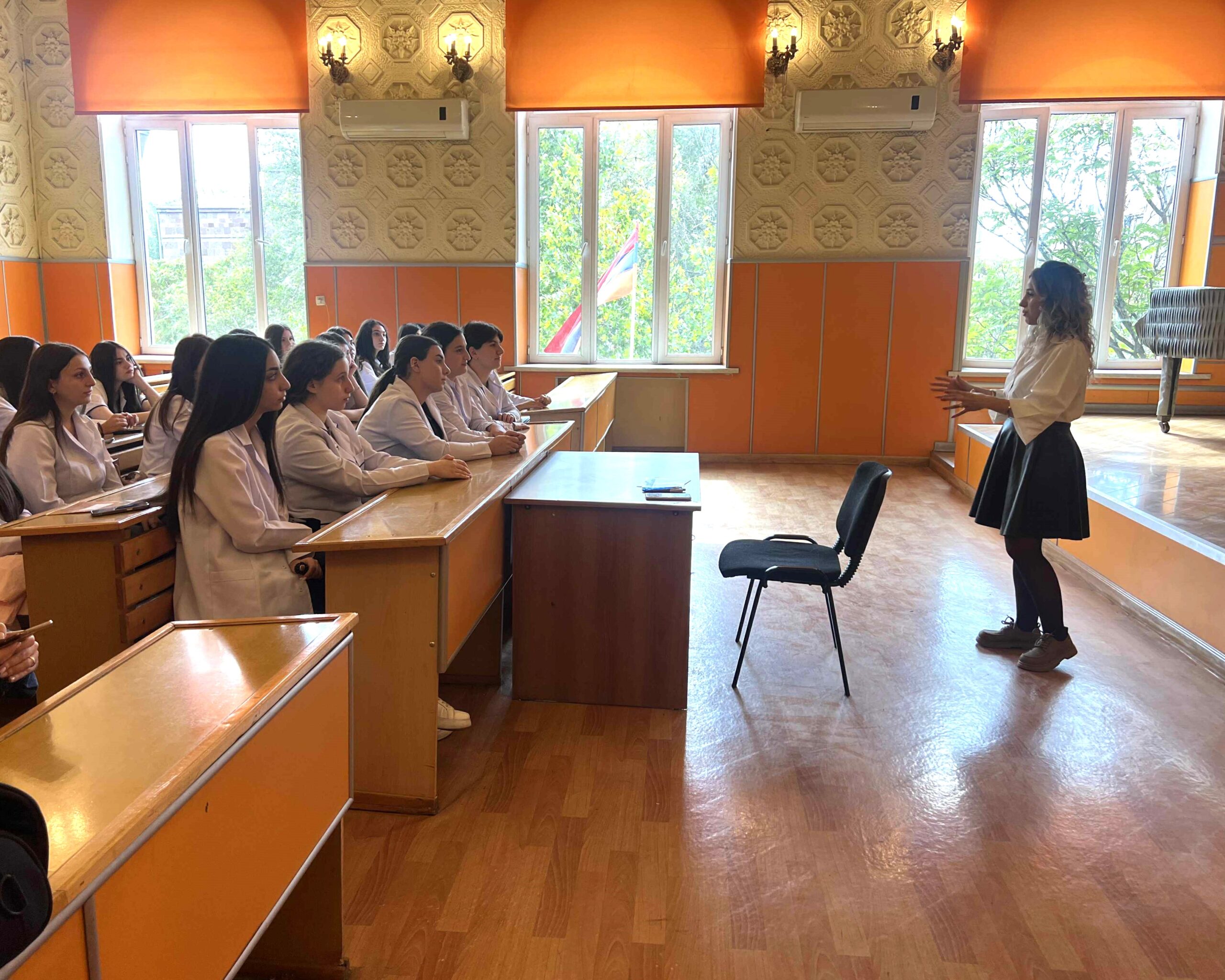 Հանդիպման նպատակն էր քոլեջի «Քույրական գործ» և «Մանկաբարձական գործ» բաժնի ուսանողներին ներկայացնել «Քույրական գործ» բակալավրի կրթական ծրագիրը (Bachelor of Science in Nursing/BSN)։