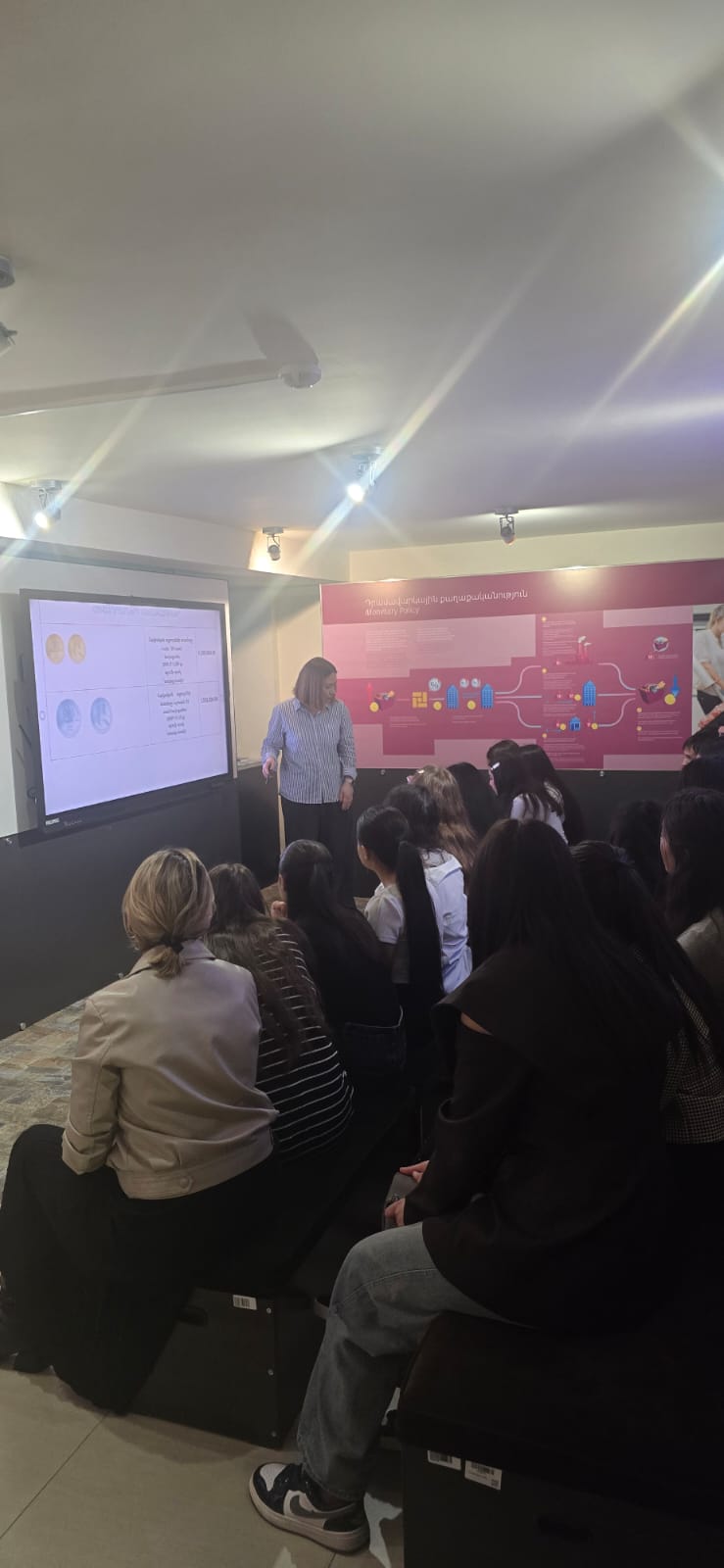 Այցի ընթացքում ուսանողները ծանոթացան Հայաստանի ֆինանսական համակարգի պատմությանը, դրամավարկային քաղաքականության հիմնական սկզբունքներին և Կենտրոնական բանկի գործունեությանը։ Նրանք ուսումնասիրեցին հայկական դրամի ստեղծման պատմությունը, դիտեցին տարբեր տարիների թղթադրամներ և մետաղադրամներ, ինչպես նաև տեղեկություններ ստացան դրանց պաշտպանական առանձնահատկությունների մասին։